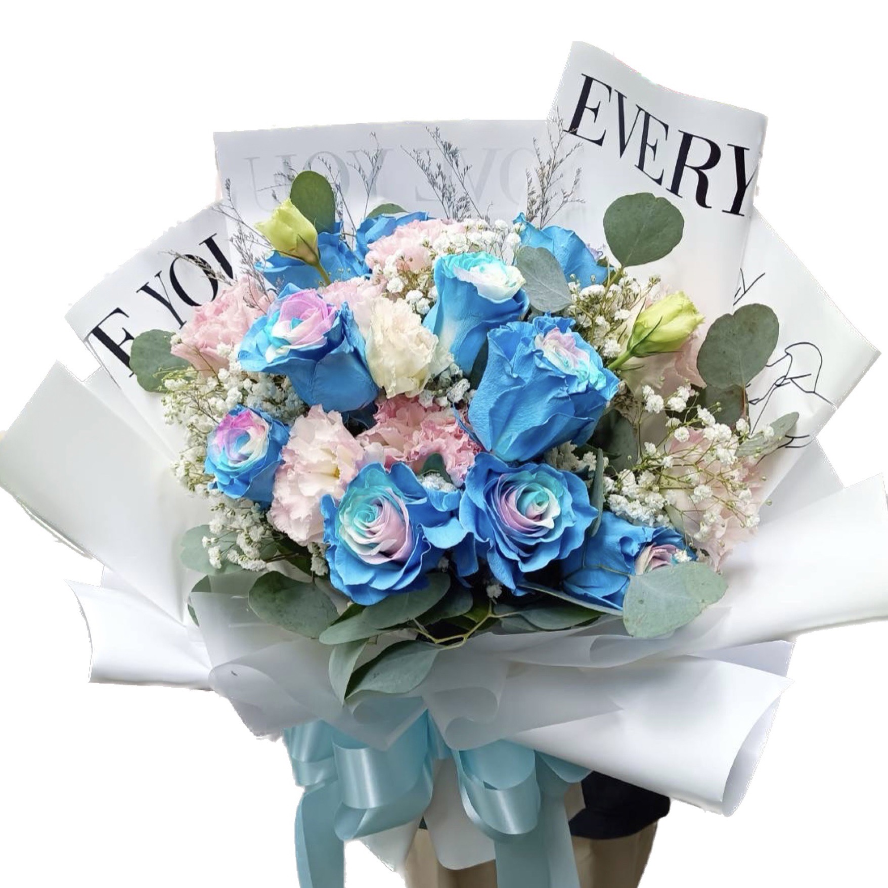 我的唯一 碎冰藍漸層玫瑰花束 情人節花束