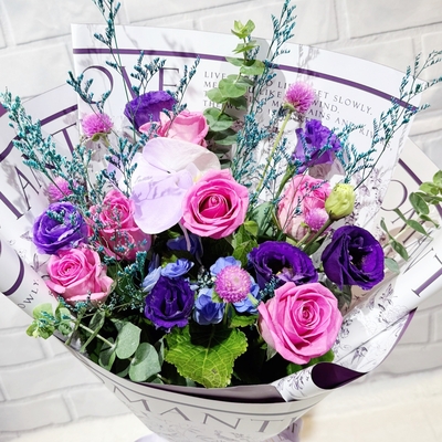 蝶戀系列-冰藍進口玫瑰混搭花束