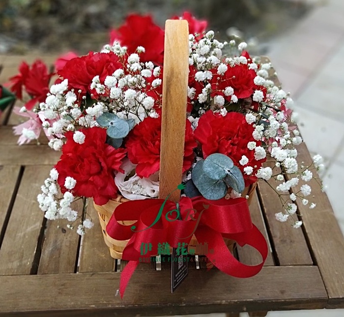 紅康乃馨6朵混搭白結梗花束搭配