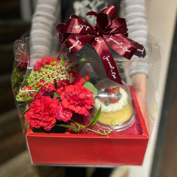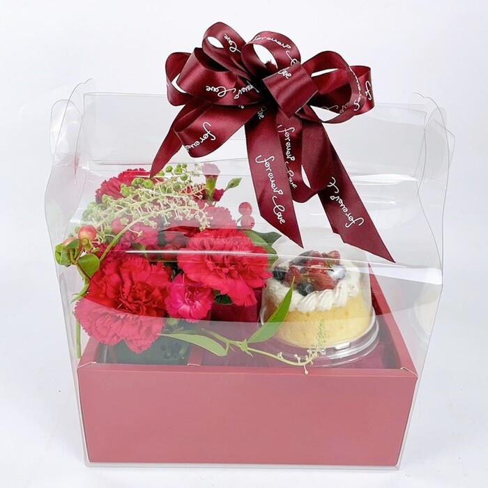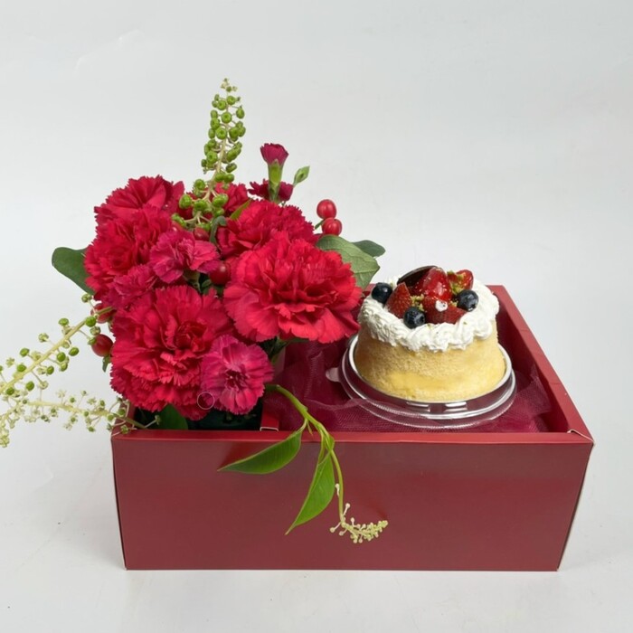 進口大康乃馨5朵提盒設計+三吋母親節蛋糕