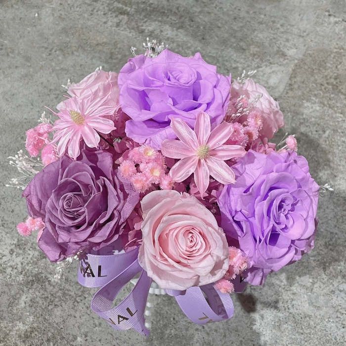 花禮說明:永生玫瑰5朵+索拉花5朵+其他配花