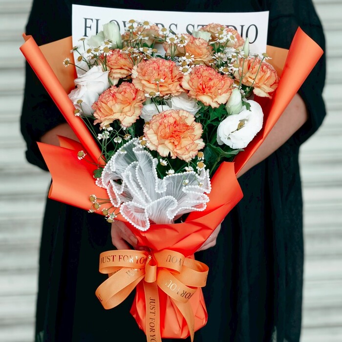 2025母親節康乃馨花束-愛馬仕橘